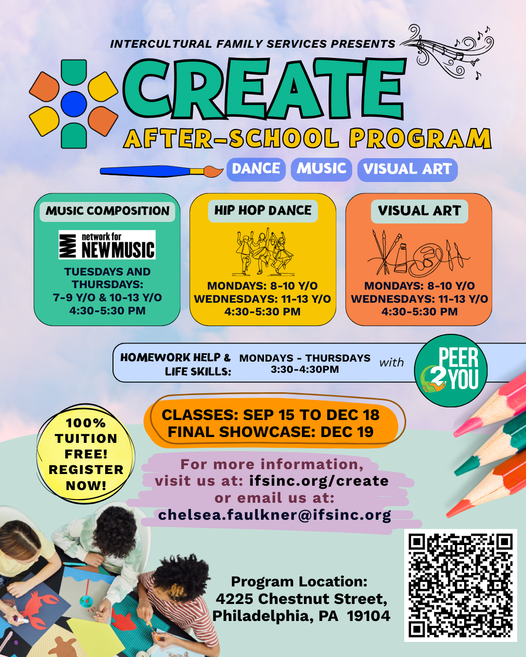CREATE (Cultural Recreation Enrichment Arts Talent Education) is an after-school program that provides enriching, culturally responsive experiences for underserved and marginalized children in Philadelphia. Through performing arts workshops and creative exploration, CREATE fosters youth development, cultural awareness, and personal empowerment in a safe, inclusive environment.